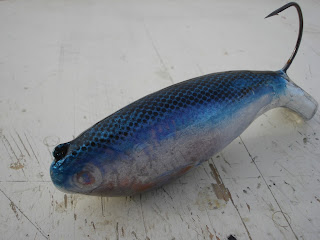 En un catalogo de una reputada marca veo un señuelo que me llama la atención, empiezo a investigar y por fin decido incluirlo en la lista de proyectos, en una salida me enseñan el señuelo en cuerpo presente y ahí es donde ya decido pasarlo de la lista a la libreta y al tallado, este a sido el resultado.